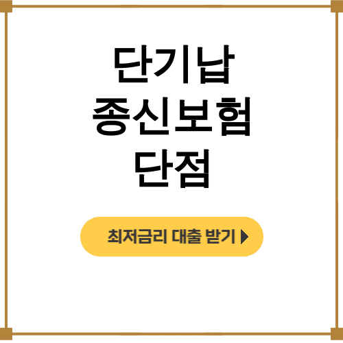 납입 기간 동안 보험료 미납 시 단기납 종신보험 단점이 드러나 손실이 클 수 있으므로 주의해야 합니다.